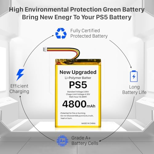 The best replacement battery for PS5 controller compatible with Sony Playstation 5 DualSense CFI-ZCT1W PS5 LIP1708 controllers, top quality class A + cell in the battery market, built in a special microchip against short circuit, overcharging, overdischarging and overheating, greatly extends the life of Li-ion battery.
