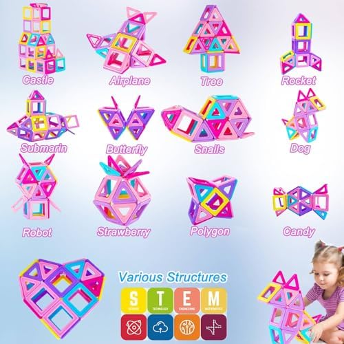 Illuminez l’imagination et la créativité de votre enfant – De bons blocs de construction magnétiques éducatifs SETM Jouet magnétique pour fille à partir de 3, 4, 5, 6 ans