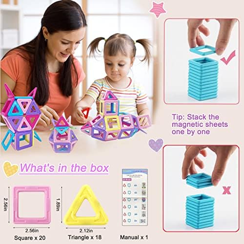 【Jouet interactif parent-enfant】nos jeu construction magnetique enfant sont livrés avec 38 jeu de magnetique,20 carrés et 18 triangle.Les jeu bloc de construction magnétique éloigneront les enfants de l’écran et permettront à vos enfants de profiter du plaisir des magnetique enfant jouet fille garcon 3 4 5 6 7 ans.Les filles de 3 4 5 ans n’importe quand.Les jeu construction magnetique enfant inspirent non seulement l’imagination de nos enfants,mais améliorent également la vie des familles et des enfants