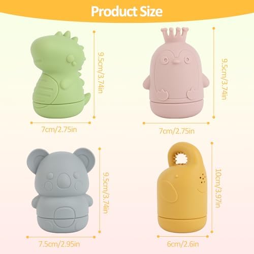 🐘【Mignons jouets de bain en silicone】Cet ensemble de jouets de bain pour bébé comprend des pingouins, des éléphants, des koalas, des dinosaures et quatre animaux mignons. Les couleurs vives aident les bébés à identifier les couleurs, les formes mignonnes attirent facilement l’attention des enfants et les amusent, laissant les enfants aimer l’heure du bain. Ils peuvent également être utilisés comme masseur corporel. Nos jouets de bain pour bébé aident à exercer la coordination œil-main, la dextérité et le développement des compétences motrices de votre enfant.
