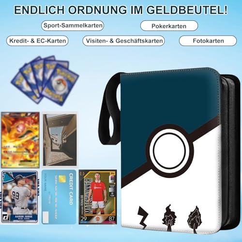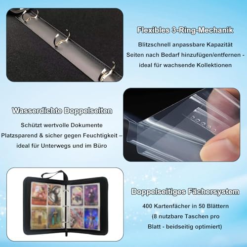 400 Card Binder, Blue Waterproof Collectible Album with 50 Pages (400 Pockets) PU Leather and Zipper Closure, Perfect for Pokemon, Magic and Bank Cards, Great Gift Idea