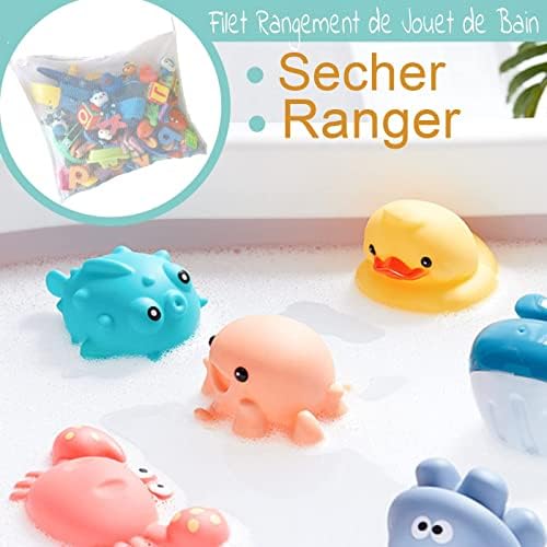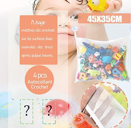 Rangement Jouet Bain Filet de Bain pour Jouets – 45*35cm 4 pcs crochets plastique , puissant adhérence sur le mural lisse . Intensive alvéole permet de passer l’eau et secher tres vite .