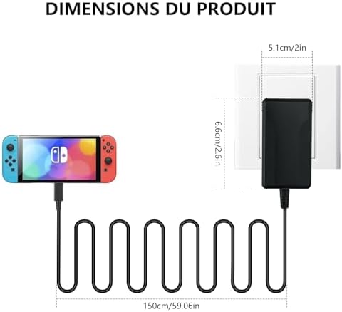 OPTIMAL POWER: 45W charger for fast and efficient charging of your Switch devices, output: 20V-2.25A, 15V-3A, 2V-3A, 9V-3A, 5V-3A; Input: 100-240V~50/60Hz