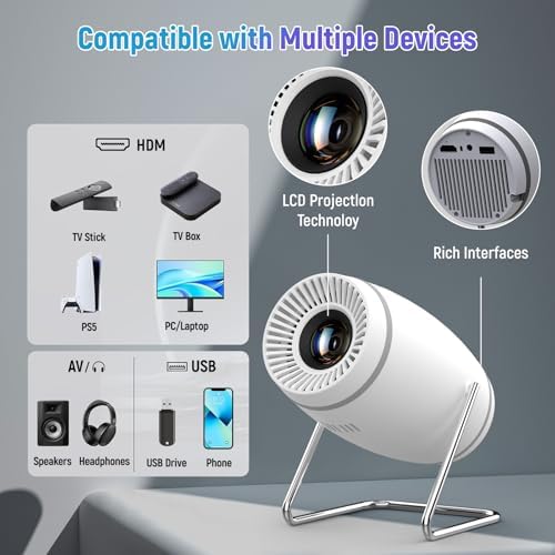【Clear Image, Vivid Colors】 The mini projector supports 1080P resolution and 4K decoding for a clear and sharp image. Our projector adopts advanced color technology, supports hdr10, hlg and other formats, color restoration is accurate and high saturation, providing you with an immersive viewing experience. The optimal projection distance is 5.51 feet with a projection size of up to 60 inches.
