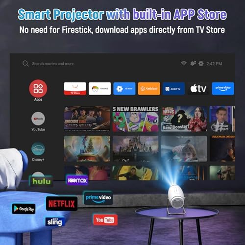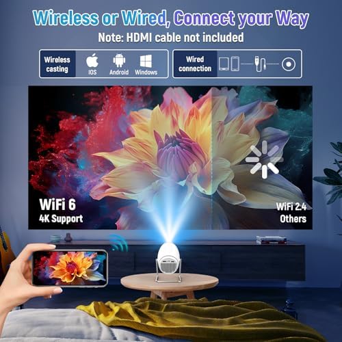 【WIFI6 Connection and Wireless Screen Mirror】4K projector supports WiFi and Bluetooth connections, as well as wireless screen mirror like Miracast and AirPlay. (Please note that if you want to view the video content of apps like Neflix, please download the Aumi TV app and do so.) The projector is equipped.