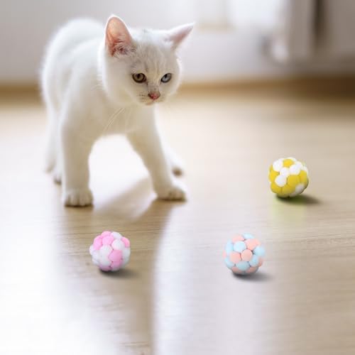 【Design coloré】: les balles pour chat sont assorties à un design coloré qui peut chasser l’ennui du chat, garder votre chat occupé et libérer vos mains, ce qui est très approprié pour les chatons et les chats.