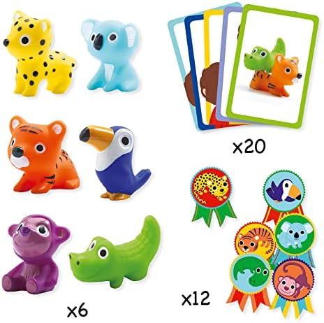 PIÈCES DURABLES ET AMUSANTES – Figurines en plastique souple en forme d’animaux (toucan, crocodile, léopard, singe, tigre, koala) et cartes robustes, conçues pour résister à l’énergie des plus jeunes et stimuler leur imagination.