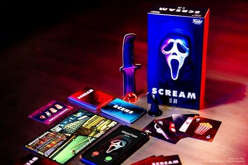 DESIGN TERRIFIANT – UNIVERS SCREAM : Le design du jeu de société immersif, inspiré de l’univers de Scream, et le marqueur 1er joueur en forme de couteau raviront les fans de frissons. Plongez-vous dans l’atmosphère angoissante de Woodsboro.