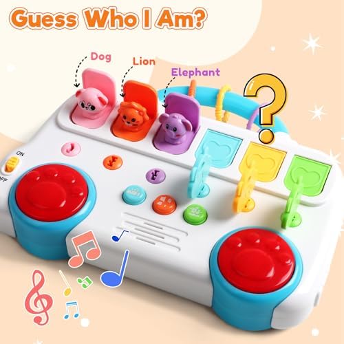 Jeux Educatif 1 an: Ce jouet bebe est livré avec 2 modes de jeu, sans musique : insérez la clé et tournez-la doucement vers la gauche, l’animal sortira ; mode musique : insérez la clé et tournez-la vers la gauche puis de nouveau vers la gauche, l’animal sortira, le jouet jouera les chiffres alphanumériques sur la clé et la musique, ce qui permet aux enfants d’apprendre tout en jouant et d’exercer la dextérité des petites mains, la reconnaissance des animaux et la reconnaissance des couleurs.
