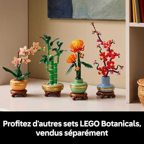 Expand your creativity with the LEGO Botanicals Bamboo of Luck Set (10344) for adults. This detailed model invites nature lovers to build an artificial plant symbolizing calm and good fortune. Recreating the serenity of nature, this realistic detailed LEGO plant features 3 bamboo stems and pebbles, and sits in a pot on a wood effect base. This bamboo is a beautiful home decor item to place in your home or office. For an even more blooming floral decoration, place alongside real plants or other designs from the LEGO Botanicals range (sold separately). Belonging to a set of four species of plants known for their beauty and called « good men » in traditional art, bamboo represents summer and brings good luck. This LEGO set for adults is a beautiful birthday gift, for Mother’s Day or Father’s Day. The LEGO brick bamboo is over 29 cm high. The set contains 325 pieces