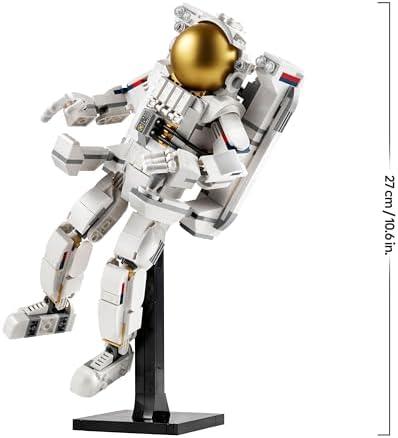 LEGO fans aged 9 and up will be able to fly into space and explore new planets with this building set. The LEGO Creator Astronaut in Space Toy (31152) carries a removable rocket backpack and helmet with a gold visor. His legs, feet, arms and fingers can be moved. Boys and girls can build 3 different models with this space LEGO toy. The mobile astronaut figure can also be transformed into a futuristic space dog with movable legs and tail. Or you can build the model into a Viper space jet with a seat for a figure not included. A stand to display it as a decoration for a child’s room is included for all 3 models. Expect a truly creative set of the theme of space exploration. LEGO Creator 3-in-1 toys are creative gifts for 9 year olds. With the bricks included in each box, your child can build 3 different designs and transform them endlessly. The 3-in-1 sets give kids of varied interests hours of play fun with a wide selection of super cool toys. This includes fast vehicles, fascinating animals and detailed city scenes. Buildable toy astronaut measures 12 cm Contains 647 pieces