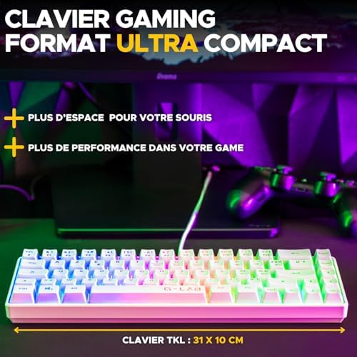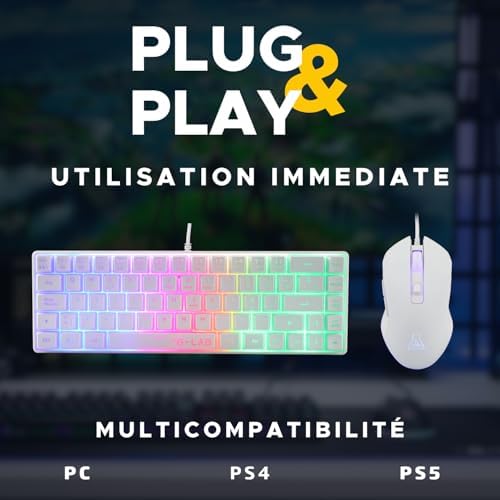 Optimized for gaming, the Hydrogen White Combo combines a compact semi-mechanical keyboard and an ultra-responsive gaming mouse, ideal for gamers looking to maximize their desktop space. The 60% numeric keypad free gaming keyboard ensures freedom of movement, perfect for completing your gaming setup. The gaming mouse, with its symmetrical design, 6 customizable buttons and adjustable DPI up to 6200, offers exceptional precision, ideal for a complete gaming setup. The gaming keyboard and mouse pack is equipped with multi-color RGB backlighting, enhancing your gaming setup and allowing you to play in dark environments for an immersive experience. Gamer keyboard keys are responsive and quiet, allowing for extended gaming sessions without disruption. This 2-in-1 gaming pack is compatible with PC/PS4/PS5, providing a complete and efficient solution for demanding gamers, making Combo Hydro the perfect choice for an optimized gaming keyboard and mouse.