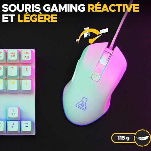 [Ultra Responsive Mouse] The gaming mouse of the Combo Hydrogen White is designed for the most demanding gamers. With a symmetrical design, 6 customizable buttons and adjustable DPI up to 6200, this gaming mouse delivers exceptional accuracy. Perfect for a complete gaming setup, this mouse complements your gaming keyboard for optimal performance.