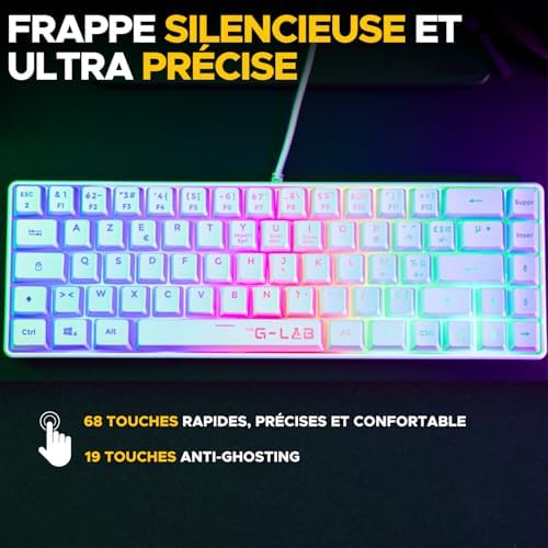 [Silent Keys] The 60% gaming keyboard of this Hydrogen White Combo will be your ultimate ally for your intense gaming sessions bring: fast, precise and comfortable typing. Featuring remarkably responsive and silent keys, this gaming keyboard lets you play for hours discreetly without disturbing your surroundings. Opt for this gaming keyboard and mouse pack for unparalleled comfort.