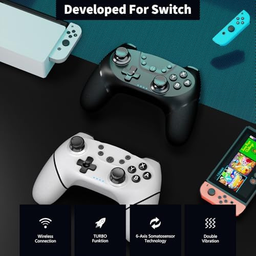 【Multiple Compatibility】AceGamer Wireless Controller for Switch is fully compatible with Switch/Switch Lite/Switch OLED, also compatible with Windows PC, and perfectly compatible with games. There is no need to install drivers. NOTE: Only support USB cable connection with PC!