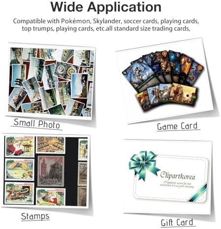 Wide application: Sammelkarten pockets are suitable for all standard size trading cards compatible with Pokémon card, basketball cards, playing cards, top trumps, football cards, baseball cards, playing cards, proxy cards, 3-inch photos, coupons, business cards, credit cards, gift cards or other cards, etc. Ideal for storing and displaying cards.