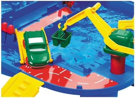Circuit de jeu d’eau aquaplay. 25 pièces dont 1 bateau à container + 1 amphibie et 1 animal. Différents niveaux, des accessoires mobiles, une écluse… Facilement transportable.