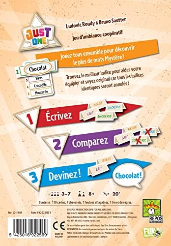Découvrez dans l’univers ludique de Just One, un jeu de société collaboratif qui vous promet des moments de convivialité et de plaisir en famille ou entre amis. Développé par Asmodee et Repos Production, Just One est un jeu accessible à partir de 8 ans et peut être joué par 3 à 7 joueurs. Dans Just One, le but est simple : les joueurs doivent deviner un mot mystère en donnant des indices, mais avec une contrainte intéressante. Chaque joueur ne peut donner qu’un seul indice, ce qui ajoute un défi supplémentaire à la communication et encourage les joueurs à faire preuve de créativité. La coopération est primordiale pour marquer des points et remporter la partie. Le jeu propose une expérience dynamique et engageante, avec des règles simples à comprendre et une durée de jeu d’environ 20 minutes. Cela en fait un choix idéal pour les soirées jeux en famille ou les rassemblements entre amis. La rejouabilité est un atout majeur de Just One. Le jeu offre des centaines de mots différents, ce qui garantit des parties variées et excitantes à chaque fois. Chaque partie est une nouvelle occasion de tester votre esprit d’équipe et votre capacité à trouver des indices intelligents. Assemblez votre équipe, préparez-vous à la communication créative et plongez dans l’aventure ludique de Just One. Que vous soyez un joueur occasionnel ou expérimenté, ce jeu captivant saura vous divertir et vous faire passer des moments inoubliables. Faites appel à votre imagination