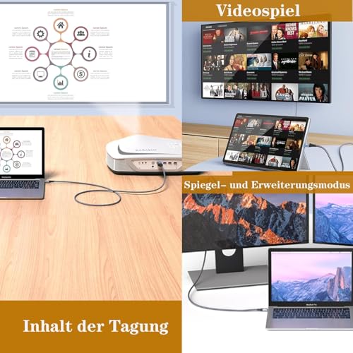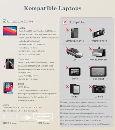 ⚡【Plug-and-Play】 No drivers required – immediate use. Transmit 4K images, audio and video from smartphones, tablets or computers to an external display. Support mirror and extended mode. (Unidirectional: USB-C → HDMI transmission only)*