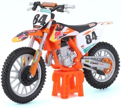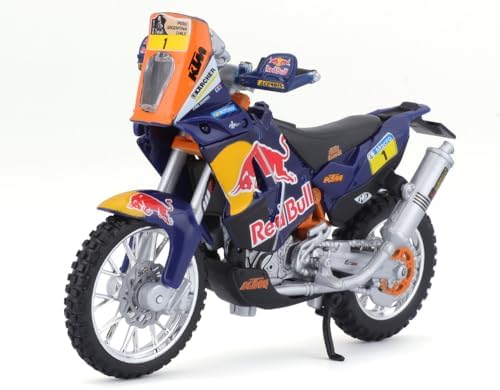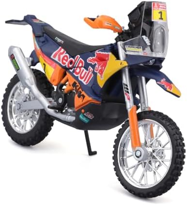 Moto RedBull en métal au 1/18ème avec son support de présentation par BBURAGO. Deux modèles disponibles: KTM 450 sxf et KTM 450 Paris Dakar. Modèle aléatoire en fonction des arrivages. A partir de 3 ans.