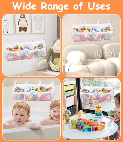 MAILLE RESPIRANTE: Le jouet de stockage avec une maille, qui a une bonne respirabilité, permettant aux jouets de sécher rapidement après le bain, et en même temps, la maille est également pratique pour vous de vérifier les jouets à l’intérieur du sac
