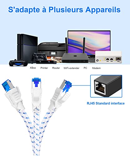Wide Compatibility Cables: Cat8 network cable is widely compatible with Cat5e, Cat6 and Cat 7 Ethernet cables. RJ45 cable connectors provide universal connectivity for PS5, Xbox, switches, routers, computers, network printers, NAS, coupler, hubs and other network equipment. It can also be used with the Wi-Fi Powerline Adapter Kit to extend the network cable. In addition, the internet cable can support POE functions