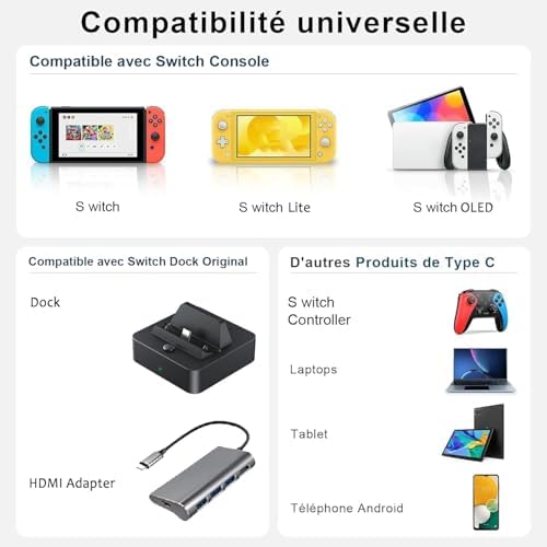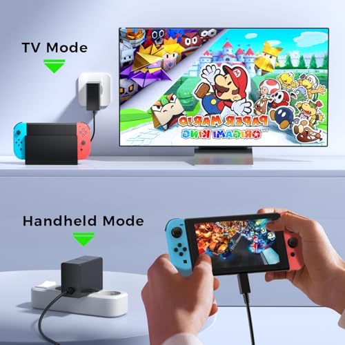 TV Mode Support: The AC adapter supports the original TV mode and Switch dock, plug and charge, allowing you to enjoy your gaming time while charging fast