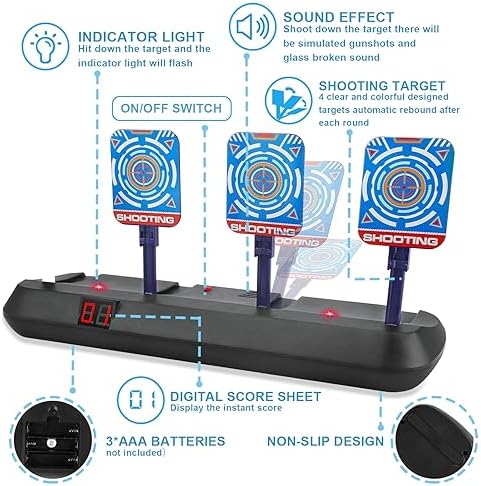 Portable et de haute qualité: La cible est facile à configurer, amovible et facile à transporter partout. Les cibles robustes et les pistolets sont capables de résister à des tirs répétés, de sorte que les enfants peuvent profiter d’innombrables jeux de tir sans se soucier des dommages.