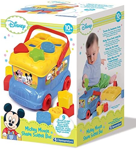 Bébé apprend les formes et les couleurs avec le bus des formes de Mickey. Composé de 6 trous à formes, de 9 pièces colorés Disney Baby à encastrer, d’une poignée de transport et de 4 roues pour jouer avec le bus.