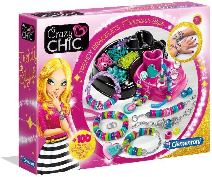 Un fantastique coffret créatif pour créer des bracelets multicolores et être toujours à la mode. Adapte les chaînes ou les bracelets à ta tenue et ton style sera parfait en toute occasion ! le coffret contient 100 perles colorées, des fermoirs métalliques, des bracelets en lycra et des chaînes à assembler pour former des bijoux glamour. Les accessoires inclus te permettront de faire facilement les bijoux et de ranger tes perles. Suis le manuel illustré pour tes premières créations et laisse ensuite libre cours à ton imagination.