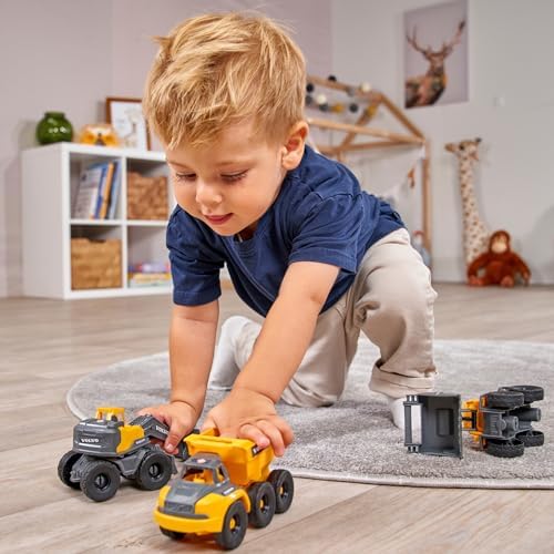 Véritables véhicules Volvo – Les trois voitures de jeu sont des voitures Volvo sous licence officielle à l’échelle 1:16 (16 cm chacune) : fidèles à l’original et détaillées dans les couleurs célèbres jaune-gris.