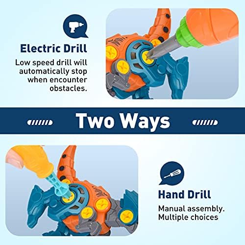 Cet ensemble de jouets dinosaure comprend quatre adorables dinosaures, une perceuse électrique à basse vitesse et une perceuse à main. Est le meilleur cadeau pour les enfants