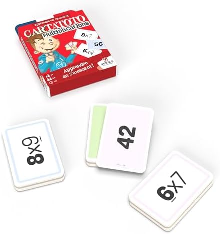Apprends les multiplications en t’amusant ! Avec ce jeu, la révision devient un jeu d’enfant. Les enfants mais aussi les parents seront incollables sur leurs tables de multiplications.110 cartes recto/verso : opération/résultat pour faciliter l’apprentissage ! Jeu de 110 cartes + 1 règle du jeu de 8 pages.