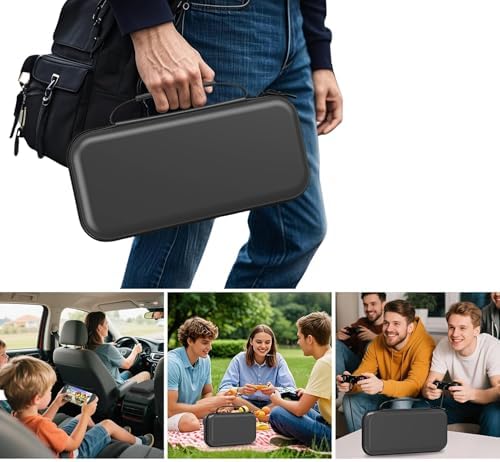✔️UTILISATION : Installation facile et sans difficulté. Il suffit de mettre votre console à l’intérieur de chaque partie dédiée. La pochette noire possède une poignée pour être transportée facilement. Remarques : l’étui noir est livré vide, il ne contient pas la console ni aucun jeux ou accessoires.