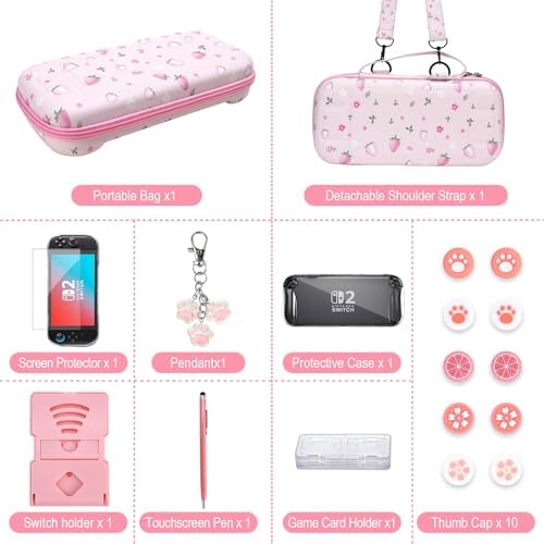 【Perfect Gift Set for Switch 2 Players】This set includes all the necessary protective accessories for your Switch Lite. With a stylus and stand included, this is the perfect gift for any Switch Lite gamer. Its compact design makes it easy to carry and keeps all your accessories organized. Please note that console and game cards are not included. Switch 2 case designed for girls.