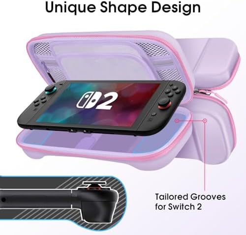 Unique shape, high foot design, custom grooves case for Switch 2 and a built-in strap, holding your Switch and Joy-Con securely