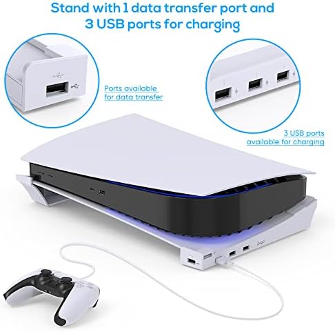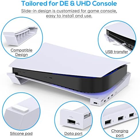 4 in 1 USB Port: Support for PS5 has 3 USB interfaces for charging other devices and 1 USB 2.0 interface for data transmission; It is efficient and convenient, you can enjoy data transfer and power from your device at the same time