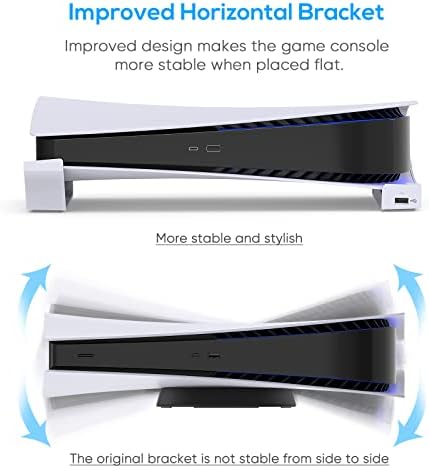 Easy Installation: No screws or tools required, the sliding design holds the console securely on both sides, provides a safer stand than the original stand; For PS5 Disc version, install the console at the bottom of the left bracket, and for the PS5 Digital Edition version, install the console at the top of the left bracket