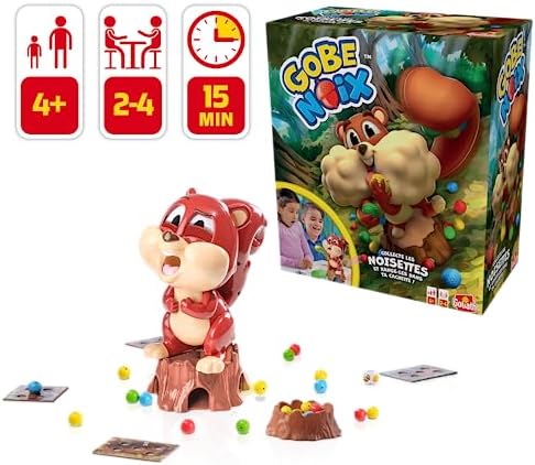 JOUER EN FAMILLE OU ENTRE AMIS : Gobe Noix est un jeu interactif qui rassemble petits et grands pour des moments de convivialité et de partage en famille ou entre amis autour de Gobe Noix l’écureuil. Il est le centre de l’attention, juché sur son tronc d’arbre, avec sa bouche à remplir de noisettes multicolores