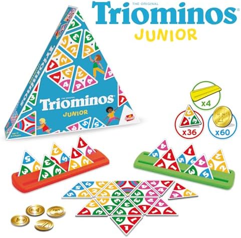 Offrez à vos enfants une expérience ludique et éducative avec Triominos Junior, le jeu de société innovant à 3 côtés ! Conçu pour les enfants dès l’âge de 4 ans, ce jeu de dominos repense les règles traditionnelles en introduisant des pièces triangulaires, ajoutant ainsi un nouveau défi et une dimension stratégique passionnante.Triominos Junior est bien plus qu’un simple jeu de dominos. En plus de s’amuser, les enfants développeront leurs compétences de réflexion, de calcul et de résolution de problèmes. Ils apprendront également les couleurs et les chiffres tout en améliorant leur capacité de concentration.Le concept est simple : associer les pièces de manière à ce que les côtés correspondants aient les mêmes couleurs ou chiffres. Les enfants devront faire preuve de logique et de stratégie pour obtenir le plus de points possible en combinant les pièces de manière astucieuse.Triominos Junior peut être joué en famille ou entre amis, avec 2 à 4 joueurs. Les règles sont faciles à comprendre, ce qui en fait un jeu accessible même aux plus jeunes. Rassemblez petits et grands pour partager des moments de complicité et de divertissement autour de ce jeu captivant.Les parties de Triominos Junior sont d’une durée d’environ 20 minutes, idéales pour occuper les enfants pendant une pause ludique. Les parties ne sont ni trop courtes ni trop longues, offrant ainsi un équilibre parfait entre plaisir et engagement.La qualité et la sécurité sont au cœur de Triominos Junior. Les pièces sont conçues pour être manipulées facilement par les enfants, et le jeu est fabriqué avec des matériaux de haute qualité pour une durabilité à toute épreuve. Vous pouvez avoir l’esprit tranquille en laissant vos enfants jouer en toute sécurité.