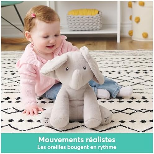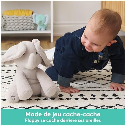 ÉVEILLER LES SENS – La peluche éléphant Flappy est le compagnon interactif idéal pour développer l’éveil et les sens du bébé ; Ce dernier sera curieux de ses mouvements et adorera bouger ou danser avec son doudou Flappy
