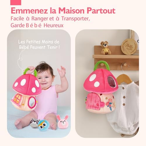 Pays des Merveilles Sensorielles: Jouet sensoriel bebe offrent une expérience pratique, permettant à vos tout-petits d’explorer les diverses textures des animaux de la ferme, renforcées par de délicieux hochets à l’intérieur de certains animaux pour des surprises et des fiançailles joyeuses. Des sons de froissement satisfaisants accompagnent de douces pressions, offrant une expérience sensorielle hors du commun. Le miroir latéral de la maison devient un portail de découverte de soi, favorisant la conscience de soi et déclenchant des moments de joie.