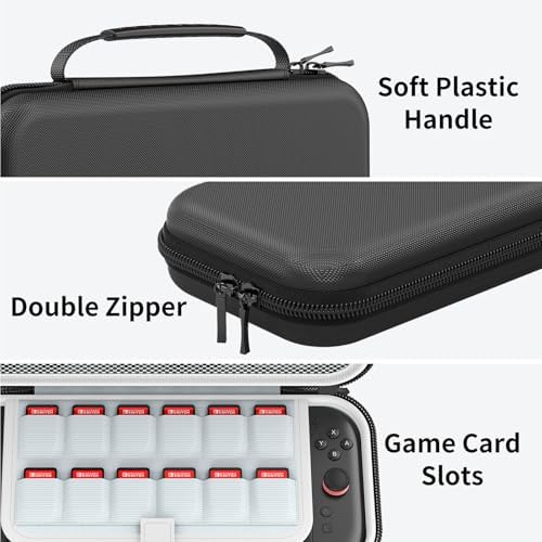 [High Quality Carrying Case] The case is made of new durable 1680 hard material, lightweight and high quality, dustproof and easy to clean. The soft flocked lining provides optimal comfort for your Nintendo Switch 2 and protects your Switch 2 console from scratches. Its stylish double zipper design prevents scratches on your precious Switch 2 console and prevents your small accessories from falling off.
