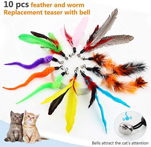 Teaser de remplacement: avec 10 pièces de remplacement de plumes et de vers différents avec des cloches, augmentez l’intérêt du chaton et stimulez le sens du chat. Les recharges multi plumes et vers ont plus d’options de jeu et plus de plaisir.
