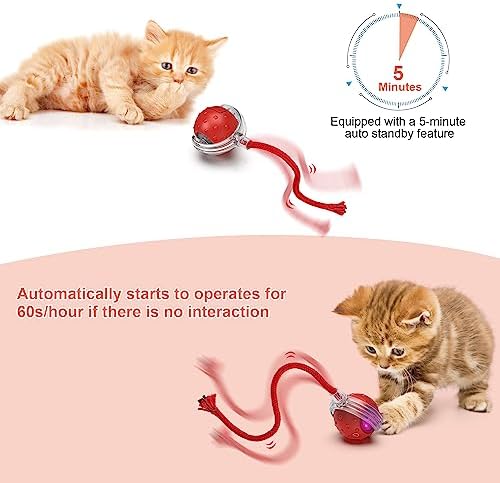 【Jouet pour chat rechargeable】Le jouet sportif pour chat a une batterie rechargeable intégrée de 300mAh, qui peut être rechargée via le câble de charge USB inclus, ce qui prend seulement 1 heure pour charger le jouet complètement. Grâce à l’activation inductive (mise en veille après 5 minutes de travail à chaque fois), il garantit l’intérêt de votre chat pour le jouet et prolonge considérablement le temps de veille du jouet.