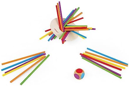 BUT DU JEU : Retirer un maximum de bâtons colorés sans faire tomber le disque central ! Le dé indique au joueur quelle couleur retirer… il n’y a plus qu’à s’armer d’une bonne dose de concentration !