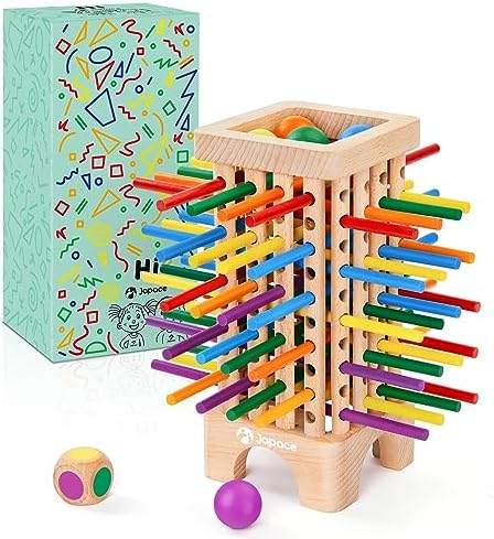 Facile à Jouer: Dans ce jeu de société très simple et amusant, les joueurs placent d’abord un filet de bâtons sur la tour et placent les boules en bois dessus. Les joueurs lancent à tour de rôle les dés et retirent les bâtons tout en essayant d’empêcher les balles de tomber. Le joueur avec le moins de balles perdues gagne ! Ces règles simples développent non seulement les compétences des enfants, mais leur permettent également de jouer avec des amis de manière amusante.