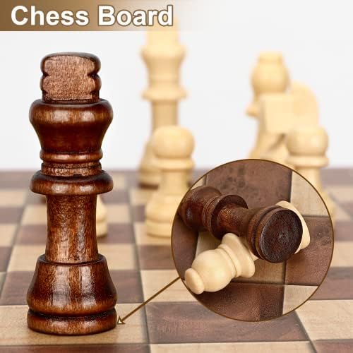 【Bois de Haute Qualité】Le jeu d’échecs est en bois de haute qualité, avec une surface lisse, une coupe nette sans bords ni coins, et les pièces d’échecs sont magnifiquement sculptées, sûres à utiliser et difficiles à casser.