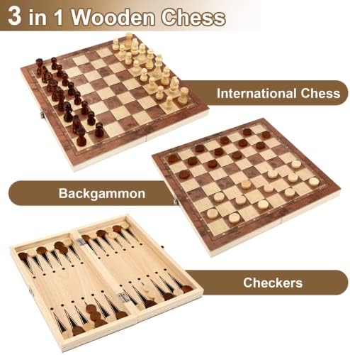 3 en 1 Jeu D’échecs, Pliable Portable Ensemble D’échiquier – 29x29x2cm
