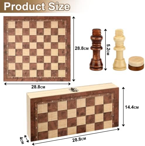 【Pliable et Portable】Jeu d’échecs: 29 x 29 x 2 cm; Le jeu d’échecs en bois peut être plié à volonté, la taille pliée est de 30 x 15,5 x 4,5 cm, facile à ranger ; Boucle en métal, facile à ranger, facile à transporter, les pièces d’échecs ne sont pas faciles à perdre, pratiques pour une utilisation en intérieur et en extérieur.